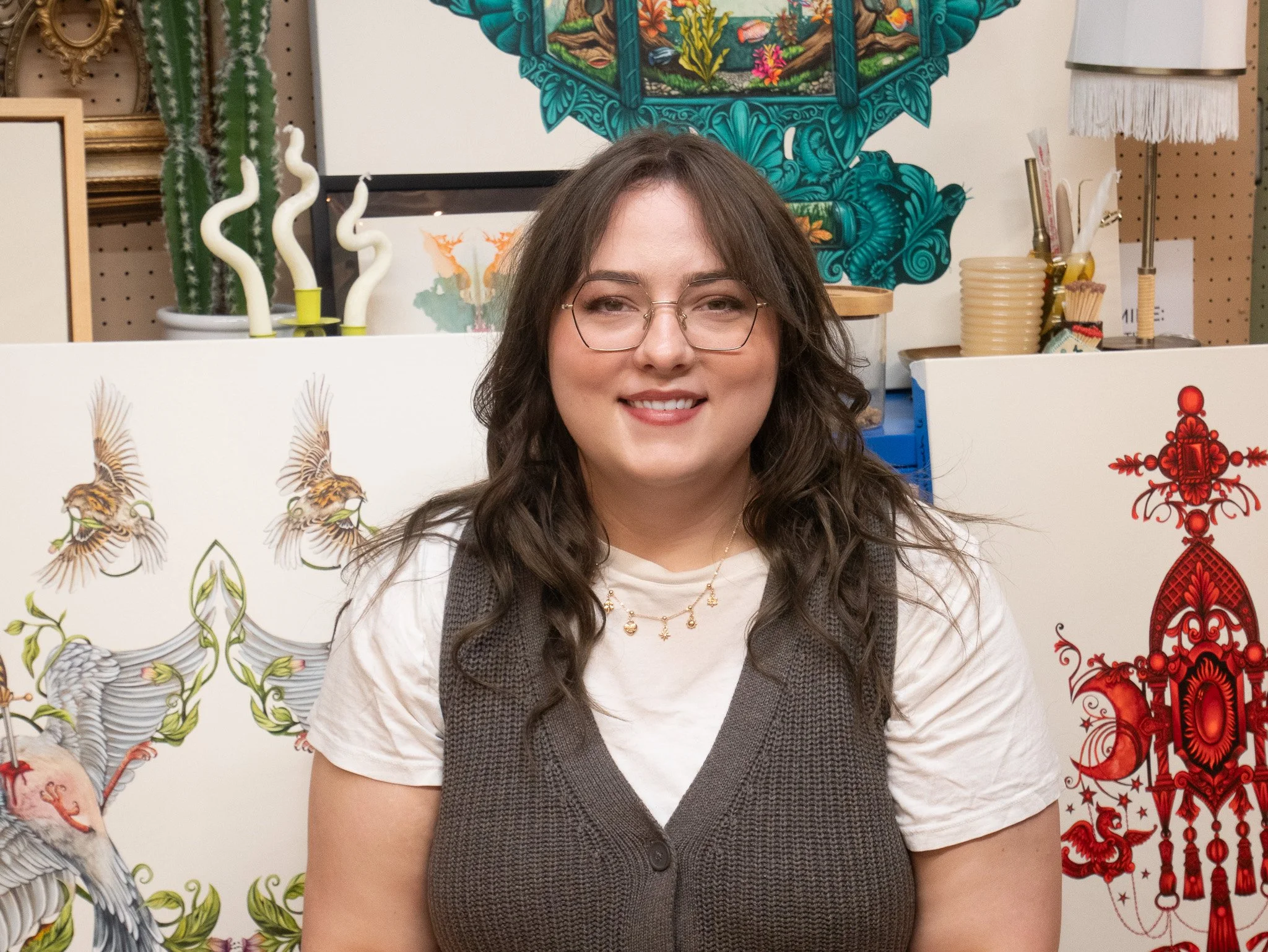 Gab Peabody is an Indianapolis-based artist working primarily in digital illustration, as well as sculptural pieces. Inspired by everyday life, her work highlights the humor and absurdity of the mundane through bright colors and a playful, cartoon-influenced style that invites viewers into a quirky, engaging world.