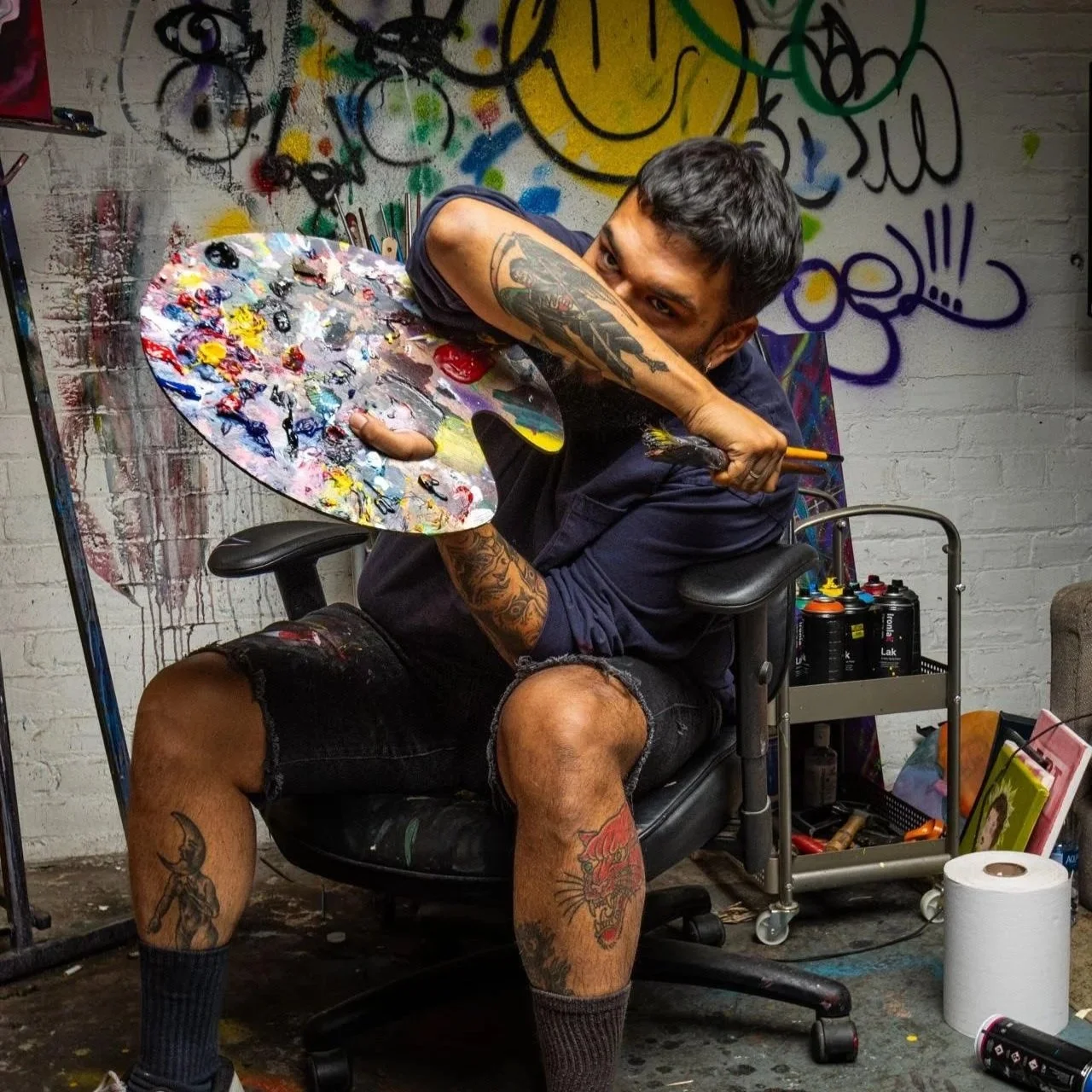 Samuel Penaloza is a painter based in Indianapolis, originally from Los Angeles. His work blends intuition, emotion, and symbolism, often inspired by personal experiences and spiritual themes. In addition to his studio practice, he works as a teaching artist, sharing creativity with youth.
